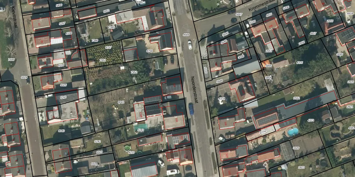 Het perceel waarop Noorderstraat 121 staat heeft een oppervlakte van 957 m². Dit is een groot perceel. De perceeloppervlakte wordt geregistreerd door het Kadaster. Gedetailleerde informatie over de maten van dit perceel kunt u vinden in het rapport Kadastrale kaart met maatvoering van Noorderstraat 121.