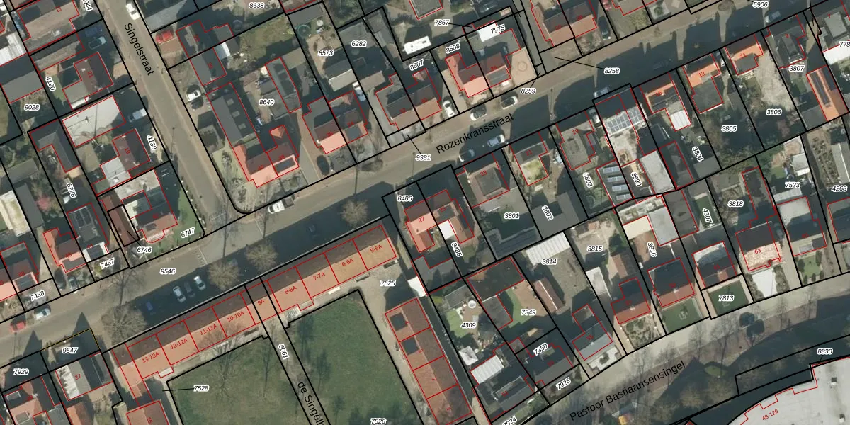 Het perceel waarop Rozenkransstraat 27 staat heeft een oppervlakte van 228 m². Dit is een middelgroot perceel. De perceeloppervlakte wordt geregistreerd door het Kadaster. Gedetailleerde informatie over de maten van dit perceel kunt u vinden in het rapport Kadastrale kaart met maatvoering van Rozenkransstraat 27.