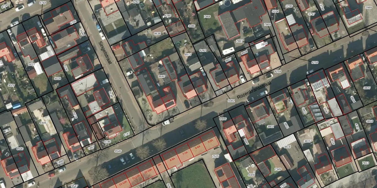 Het perceel waarop Rozenkransstraat 36 staat heeft een oppervlakte van 1193 m². Dit is een zeer groot perceel. De perceeloppervlakte wordt geregistreerd door het Kadaster. Gedetailleerde informatie over de maten van dit perceel kunt u vinden in het rapport Kadastrale kaart met maatvoering van Rozenkransstraat 36.