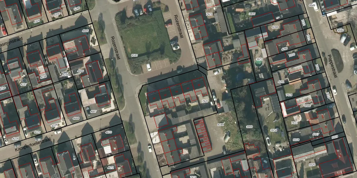 Het perceel waarop Rozenstraat 34 staat heeft een oppervlakte van 1572 m². Dit is een zeer groot perceel. De perceeloppervlakte wordt geregistreerd door het Kadaster. Gedetailleerde informatie over de maten van dit perceel kunt u vinden in het rapport Kadastrale kaart met maatvoering van Rozenstraat 34.