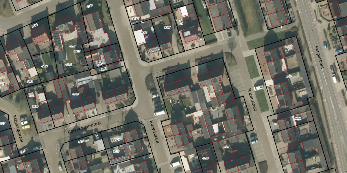 Het perceel waarop Rozenstraat 69 staat heeft een oppervlakte van 2751 m². Dit is een zeer groot perceel. De perceeloppervlakte wordt geregistreerd door het Kadaster. Gedetailleerde informatie over de maten van dit perceel kunt u vinden in het rapport Kadastrale kaart met maatvoering van Rozenstraat 69.