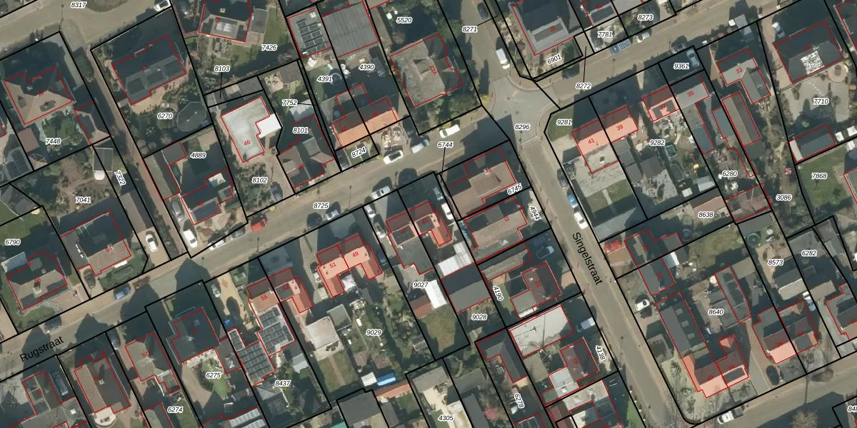 Het perceel waarop Rugstraat 45 staat heeft een oppervlakte van 700 m². Dit is een groot perceel. De perceeloppervlakte wordt geregistreerd door het Kadaster. Gedetailleerde informatie over de maten van dit perceel kunt u vinden in het rapport Kadastrale kaart met maatvoering van Rugstraat 45.