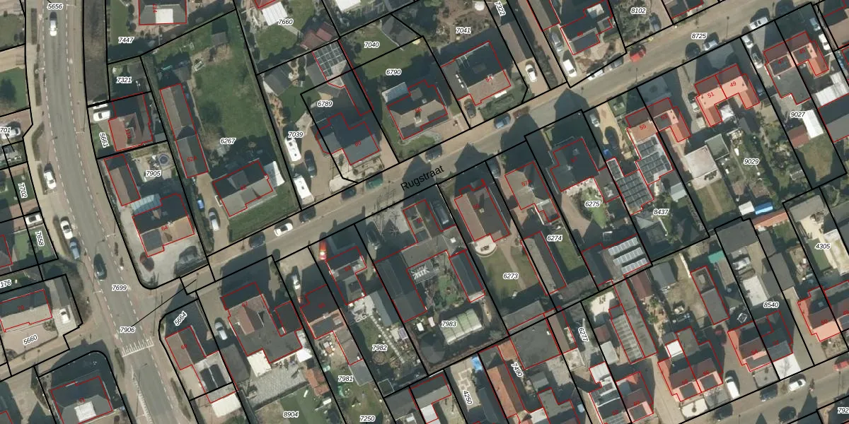 Rugstraat 61 is gelegen op kadastraal perceel RPN00D7983. Deze kadastrale aanduiding is uniek en wordt gebruikt door het Kadaster om eigendomsrechten en andere zakelijke rechten vast te leggen. Het perceel maakt onderdeel uit van de kadastrale gemeente Rucphen.