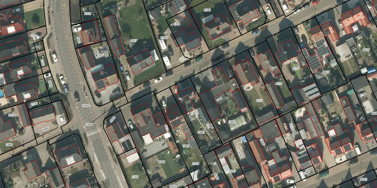 Het perceel waarop Rugstraat 63 staat heeft een oppervlakte van 481 m². Dit is een groot perceel. De perceeloppervlakte wordt geregistreerd door het Kadaster. Gedetailleerde informatie over de maten van dit perceel kunt u vinden in het rapport Kadastrale kaart met maatvoering van Rugstraat 63.