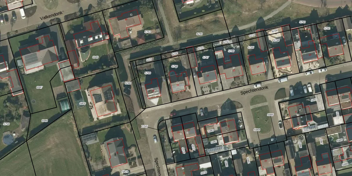 Het perceel waarop Spechtendonk 20 staat heeft een oppervlakte van 375 m². Dit is een groot perceel. De perceeloppervlakte wordt geregistreerd door het Kadaster. Gedetailleerde informatie over de maten van dit perceel kunt u vinden in het rapport Kadastrale kaart met maatvoering van Spechtendonk 20.