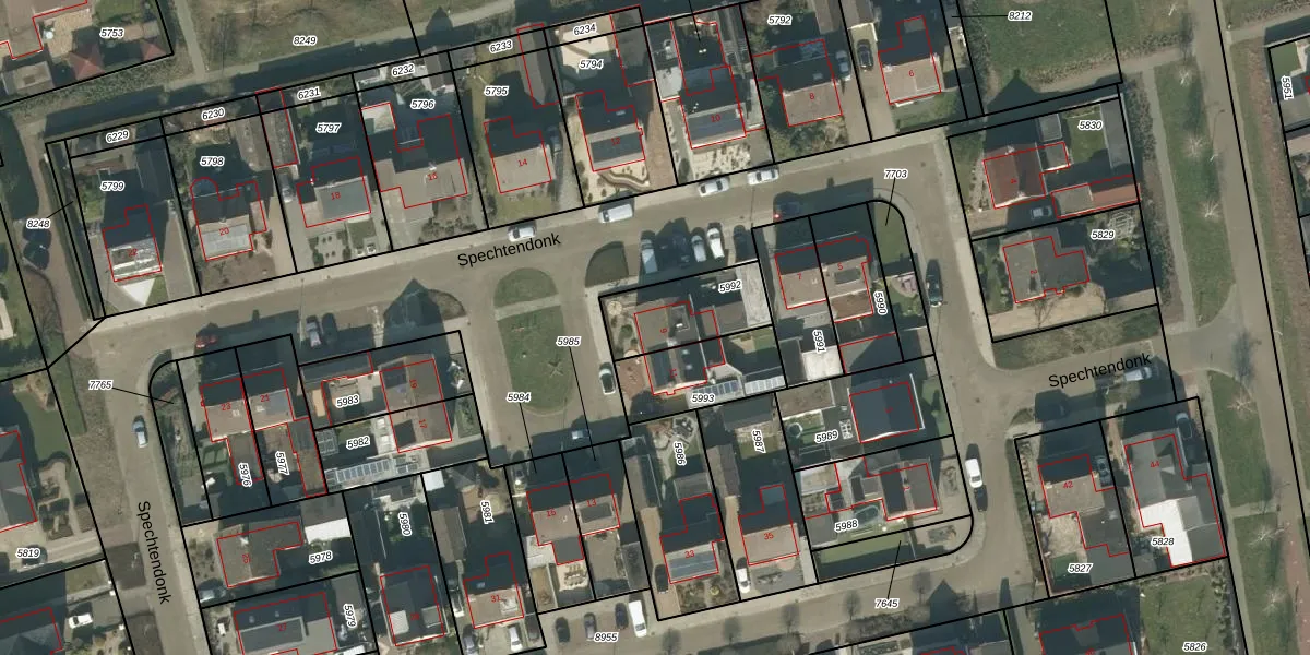 Het perceel waarop Spechtendonk 9 staat heeft een oppervlakte van 250 m². Dit is een middelgroot perceel. De perceeloppervlakte wordt geregistreerd door het Kadaster. Gedetailleerde informatie over de maten van dit perceel kunt u vinden in het rapport Kadastrale kaart met maatvoering van Spechtendonk 9.