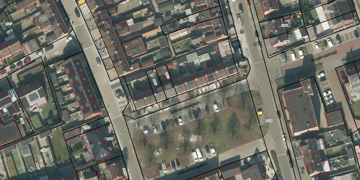 Het perceel waarop Wilhelminaplein 9 staat heeft een oppervlakte van 6049 m². Dit is een zeer groot perceel. De perceeloppervlakte wordt geregistreerd door het Kadaster. Gedetailleerde informatie over de maten van dit perceel kunt u vinden in het rapport Kadastrale kaart met maatvoering van Wilhelminaplein 9.