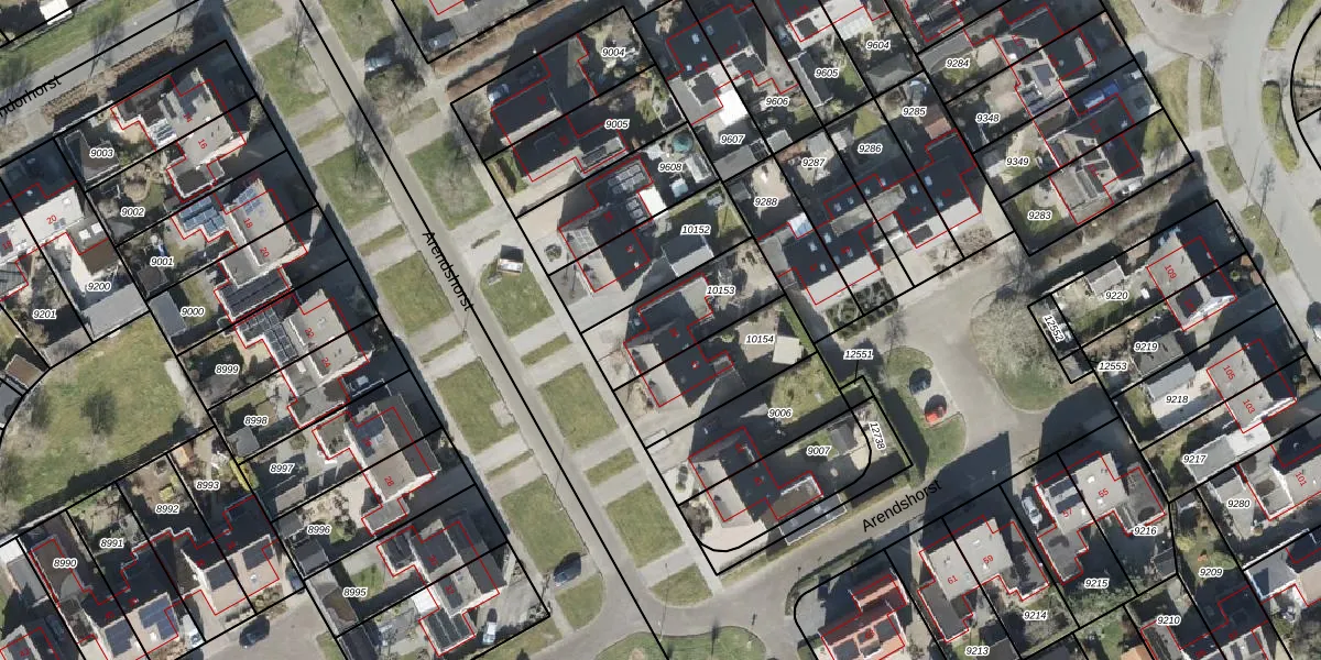 Het perceel waarop Arendshorst 39 staat heeft een oppervlakte van 300 m². Dit is een groot perceel. De perceeloppervlakte wordt geregistreerd door het Kadaster. Gedetailleerde informatie over de maten van dit perceel kunt u vinden in het rapport Kadastrale kaart met maatvoering van Arendshorst 39.