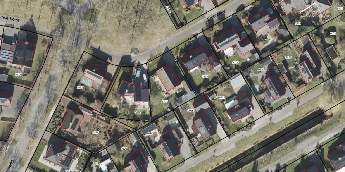 Het perceel waarop Batenborg 6 staat heeft een oppervlakte van 709 m². Dit is een groot perceel. De perceeloppervlakte wordt geregistreerd door het Kadaster. Gedetailleerde informatie over de maten van dit perceel kunt u vinden in het rapport Kadastrale kaart met maatvoering van Batenborg 6.