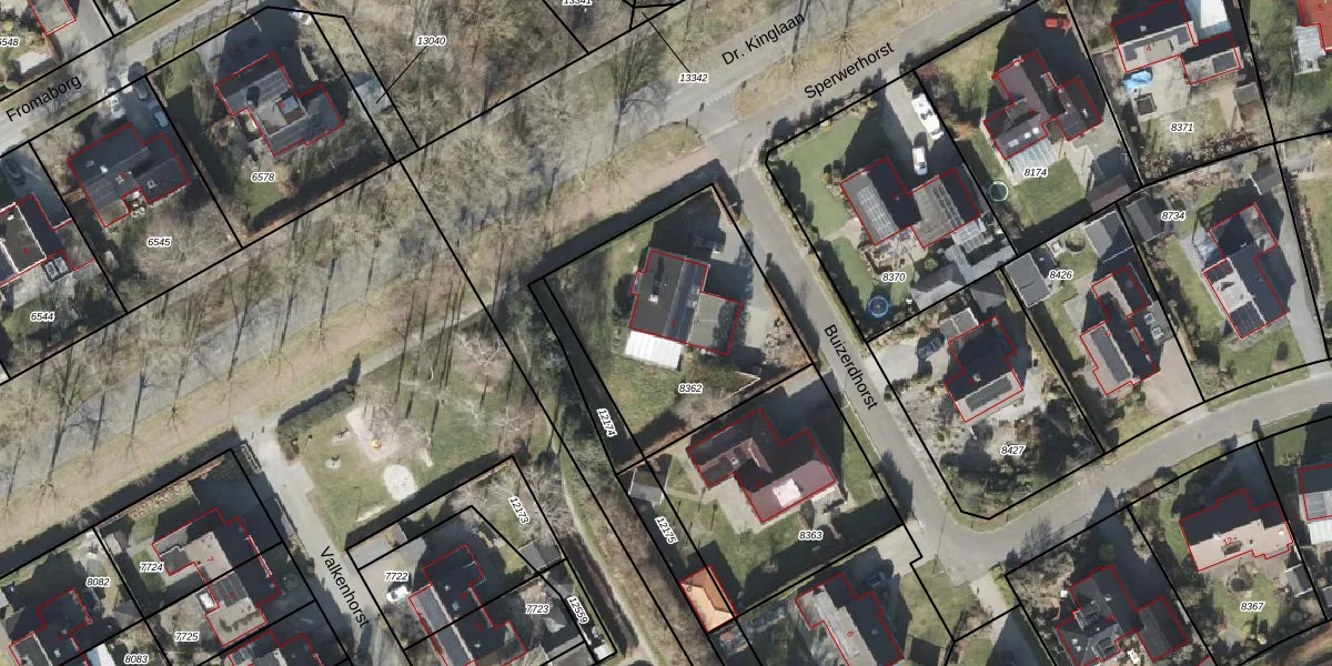Het perceel waarop Buizerdhorst 2 staat heeft een oppervlakte van 903 m². Dit is een groot perceel. De perceeloppervlakte wordt geregistreerd door het Kadaster. Gedetailleerde informatie over de maten van dit perceel kunt u vinden in het rapport Kadastrale kaart met maatvoering van Buizerdhorst 2.
