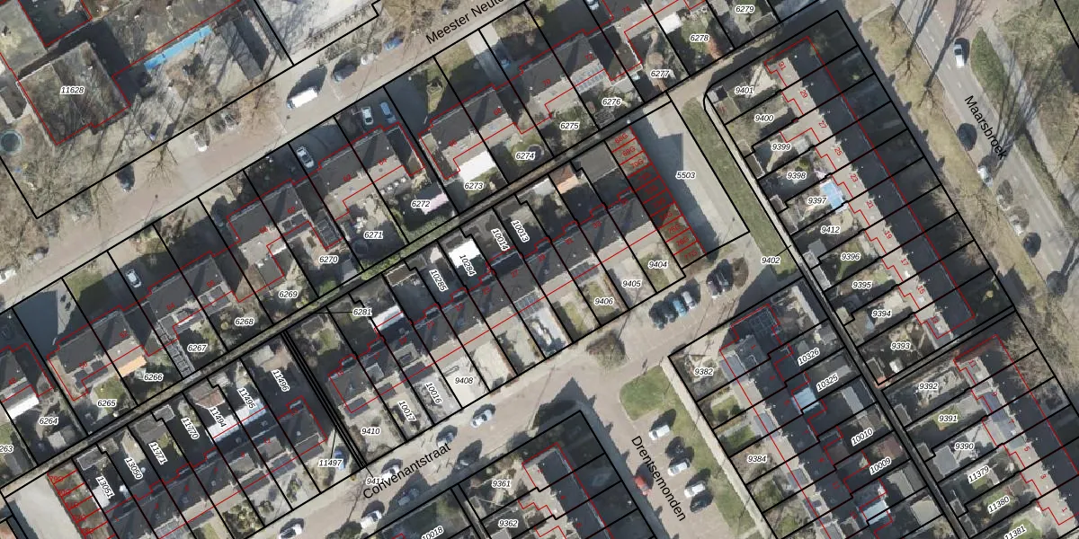Het perceel waarop Convenantstraat 29 staat heeft een oppervlakte van 177 m². Dit is een middelgroot perceel. De perceeloppervlakte wordt geregistreerd door het Kadaster. Gedetailleerde informatie over de maten van dit perceel kunt u vinden in het rapport Kadastrale kaart met maatvoering van Convenantstraat 29.