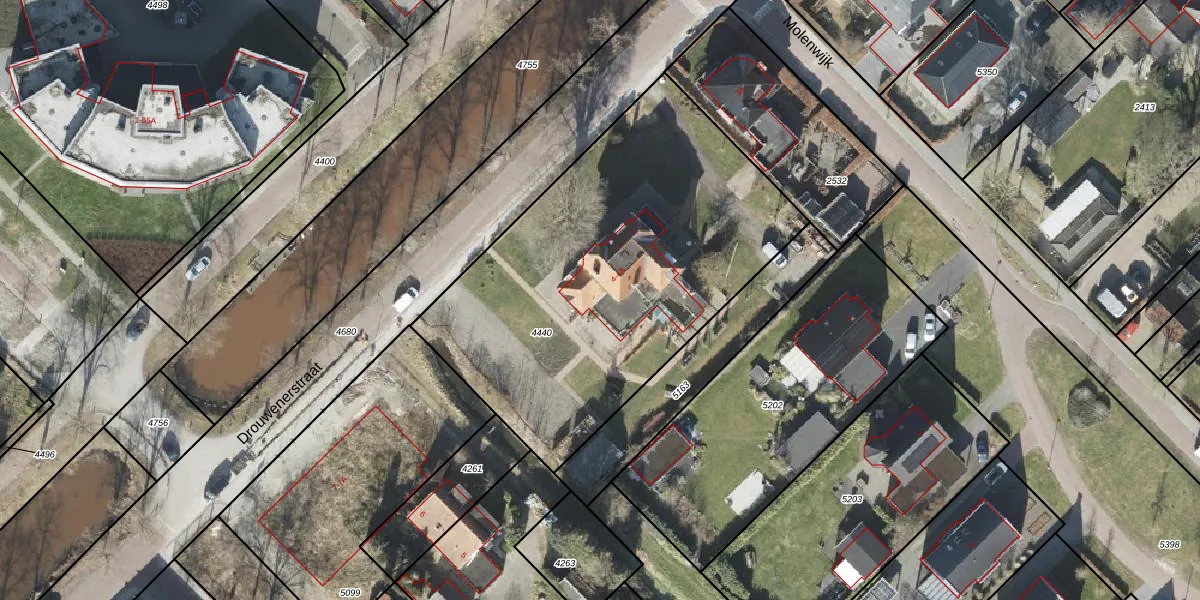 Het perceel waarop Drouwenerstraat 4-A staat heeft een oppervlakte van 2065 m². Dit is een zeer groot perceel. De perceeloppervlakte wordt geregistreerd door het Kadaster. Gedetailleerde informatie over de maten van dit perceel kunt u vinden in het rapport Kadastrale kaart met maatvoering van Drouwenerstraat 4-A.