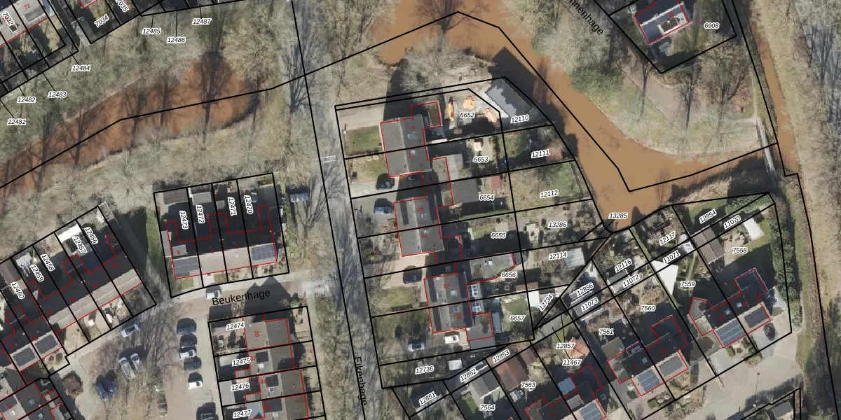 Het perceel waarop Eikenhage 13 staat heeft een oppervlakte van 363 m². Dit is een groot perceel. De perceeloppervlakte wordt geregistreerd door het Kadaster. Gedetailleerde informatie over de maten van dit perceel kunt u vinden in het rapport Kadastrale kaart met maatvoering van Eikenhage 13.