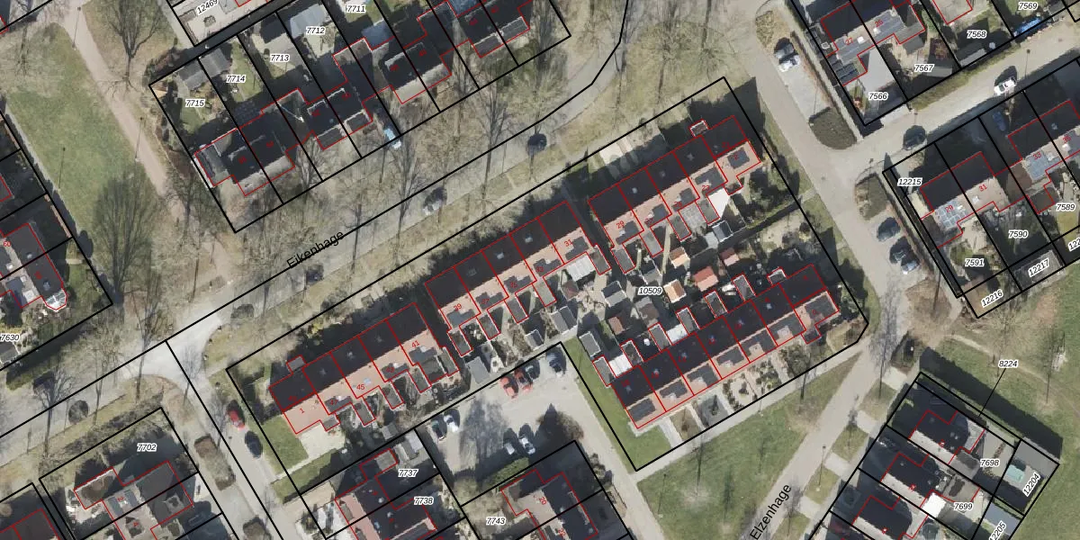 Het perceel waarop Eikenhage 33 staat heeft een oppervlakte van 4288 m². Dit is een zeer groot perceel. De perceeloppervlakte wordt geregistreerd door het Kadaster. Gedetailleerde informatie over de maten van dit perceel kunt u vinden in het rapport Kadastrale kaart met maatvoering van Eikenhage 33.