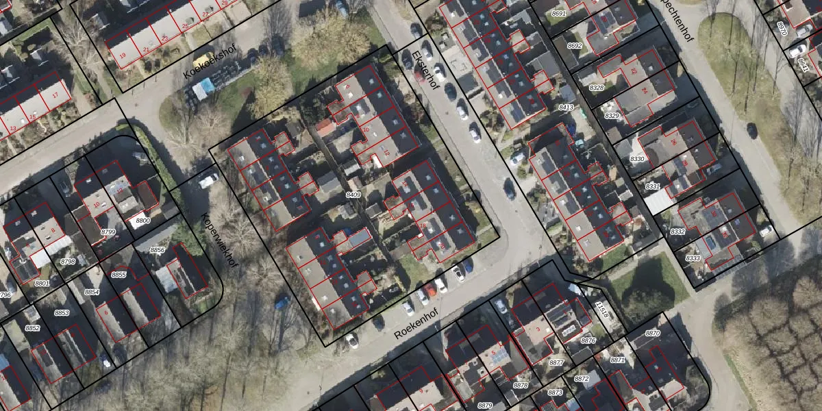 Het perceel waarop Eksterhof 16 staat heeft een oppervlakte van 2766 m². Dit is een zeer groot perceel. De perceeloppervlakte wordt geregistreerd door het Kadaster. Gedetailleerde informatie over de maten van dit perceel kunt u vinden in het rapport Kadastrale kaart met maatvoering van Eksterhof 16.