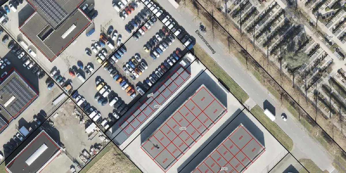 Het perceel waarop Electronicaweg 2-A-3 staat heeft een oppervlakte van 585 m². Dit is een groot perceel. De perceeloppervlakte wordt geregistreerd door het Kadaster. Gedetailleerde informatie over de maten van dit perceel kunt u vinden in het rapport Kadastrale kaart met maatvoering van Electronicaweg 2-A-3.