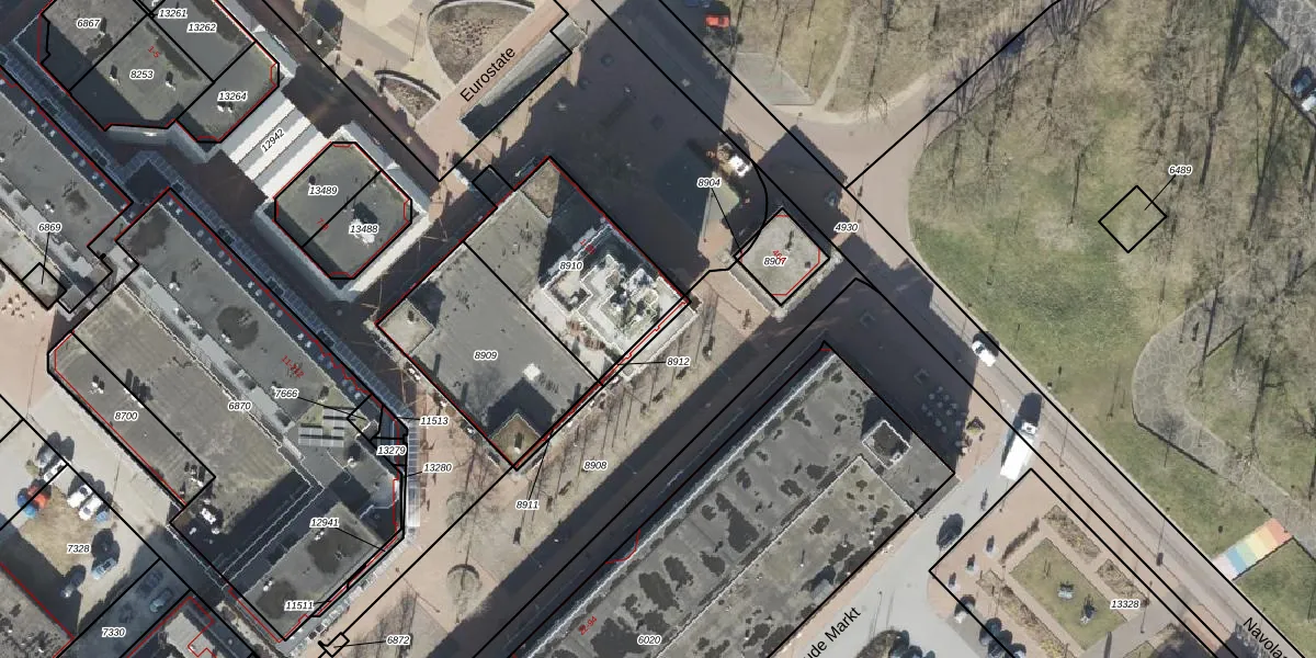 Het perceel waarop Eurostate 14 staat heeft een oppervlakte van 18 m². Dit is een klein perceel. De perceeloppervlakte wordt geregistreerd door het Kadaster. Gedetailleerde informatie over de maten van dit perceel kunt u vinden in het rapport Kadastrale kaart met maatvoering van Eurostate 14.