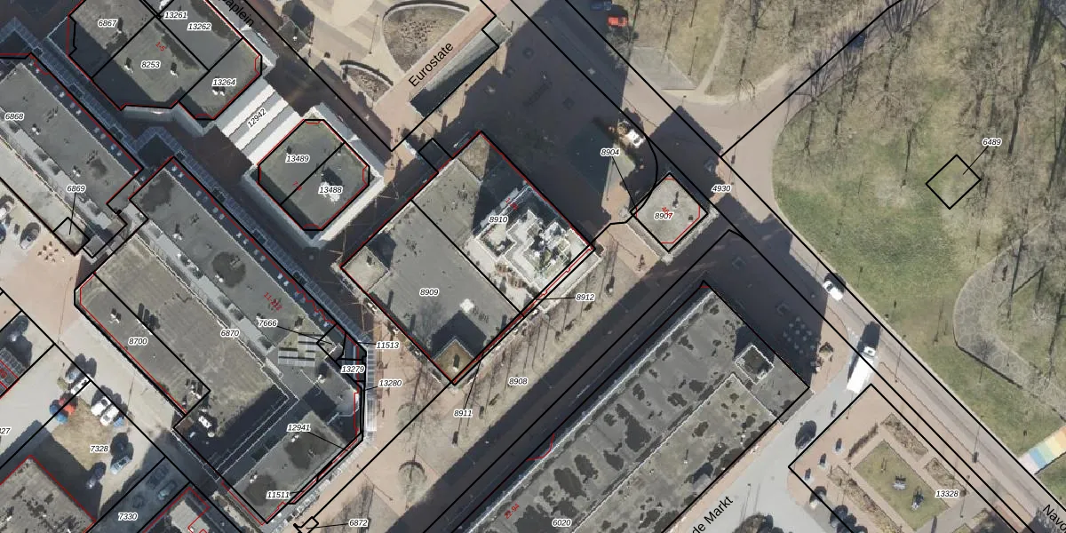 Het perceel waarop Eurostate 22 staat heeft een oppervlakte van 565 m². Dit is een groot perceel. De perceeloppervlakte wordt geregistreerd door het Kadaster. Gedetailleerde informatie over de maten van dit perceel kunt u vinden in het rapport Kadastrale kaart met maatvoering van Eurostate 22.