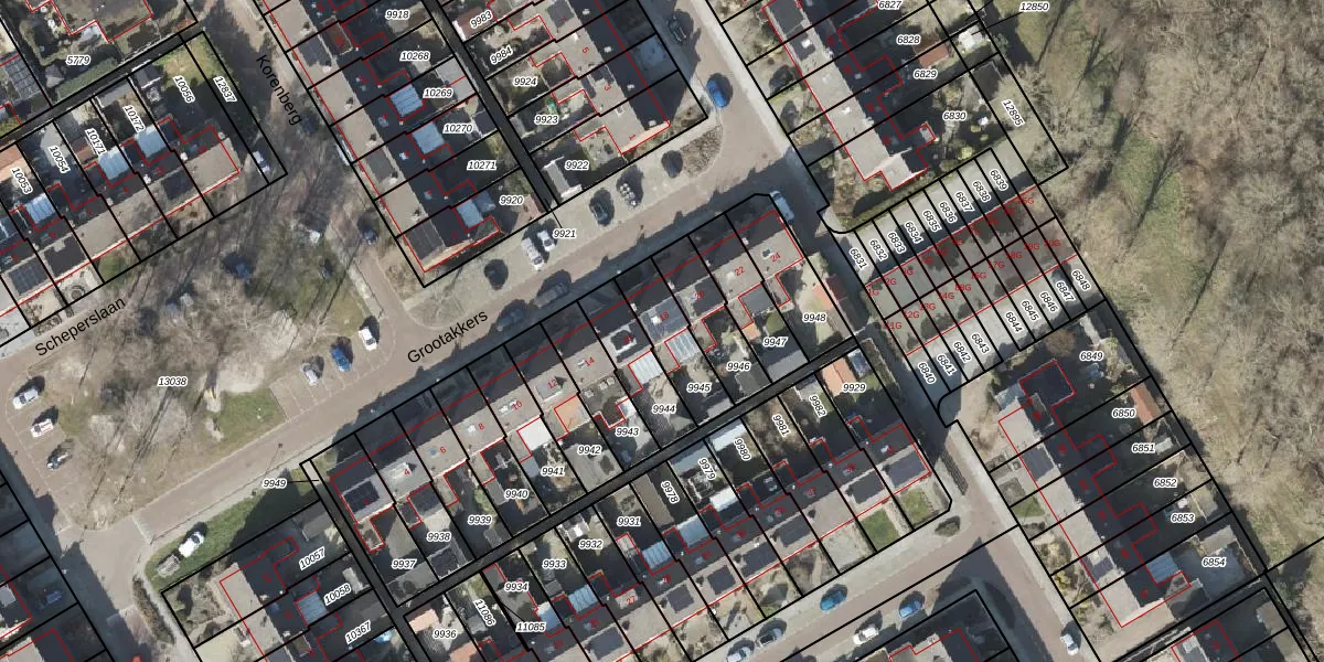 Het perceel waarop Grootakkers 18 staat heeft een oppervlakte van 166 m². Dit is een middelgroot perceel. De perceeloppervlakte wordt geregistreerd door het Kadaster. Gedetailleerde informatie over de maten van dit perceel kunt u vinden in het rapport Kadastrale kaart met maatvoering van Grootakkers 18.