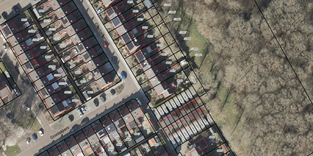 Het perceel waarop Grootakkers 28 staat heeft een oppervlakte van 171 m². Dit is een middelgroot perceel. De perceeloppervlakte wordt geregistreerd door het Kadaster. Gedetailleerde informatie over de maten van dit perceel kunt u vinden in het rapport Kadastrale kaart met maatvoering van Grootakkers 28.
