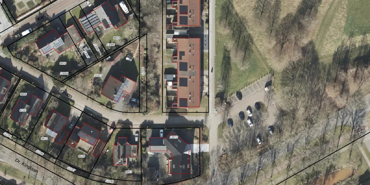 Het perceel waarop Grutto 16 staat heeft een oppervlakte van 3363 m². Dit is een zeer groot perceel. De perceeloppervlakte wordt geregistreerd door het Kadaster. Gedetailleerde informatie over de maten van dit perceel kunt u vinden in het rapport Kadastrale kaart met maatvoering van Grutto 16.