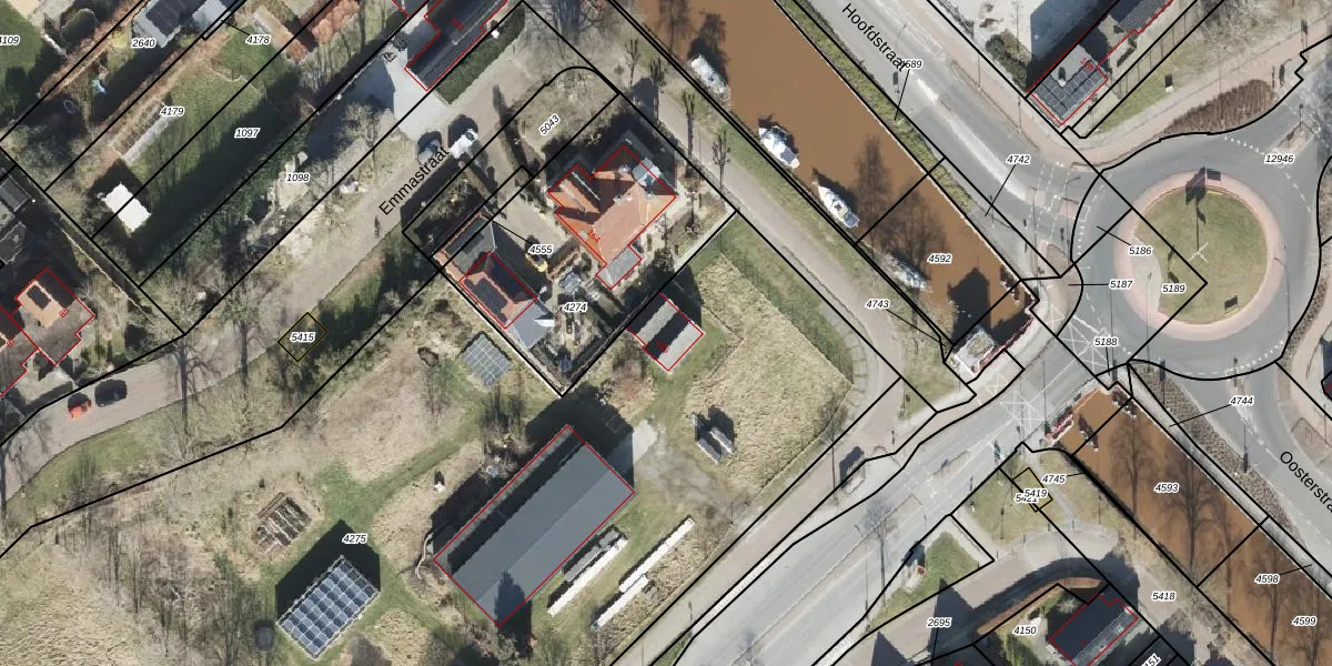 Hoofdkade 165 is gelegen op kadastraal perceel OWD00N4275. Deze kadastrale aanduiding is uniek en wordt gebruikt door het Kadaster om eigendomsrechten en andere zakelijke rechten vast te leggen. Het perceel maakt onderdeel uit van de kadastrale gemeente Onstwedde.