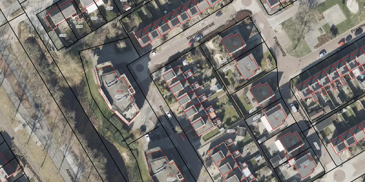 Het perceel waarop Klemslootstraat 18 staat heeft een oppervlakte van 3068 m². Dit is een zeer groot perceel. De perceeloppervlakte wordt geregistreerd door het Kadaster. Gedetailleerde informatie over de maten van dit perceel kunt u vinden in het rapport Kadastrale kaart met maatvoering van Klemslootstraat 18.