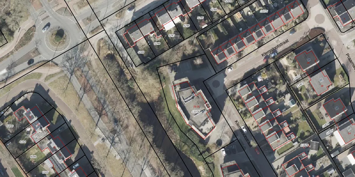 Het perceel waarop Klemslootstraat 21-G staat heeft een oppervlakte van 1395 m². Dit is een zeer groot perceel. De perceeloppervlakte wordt geregistreerd door het Kadaster. Gedetailleerde informatie over de maten van dit perceel kunt u vinden in het rapport Kadastrale kaart met maatvoering van Klemslootstraat 21-G.