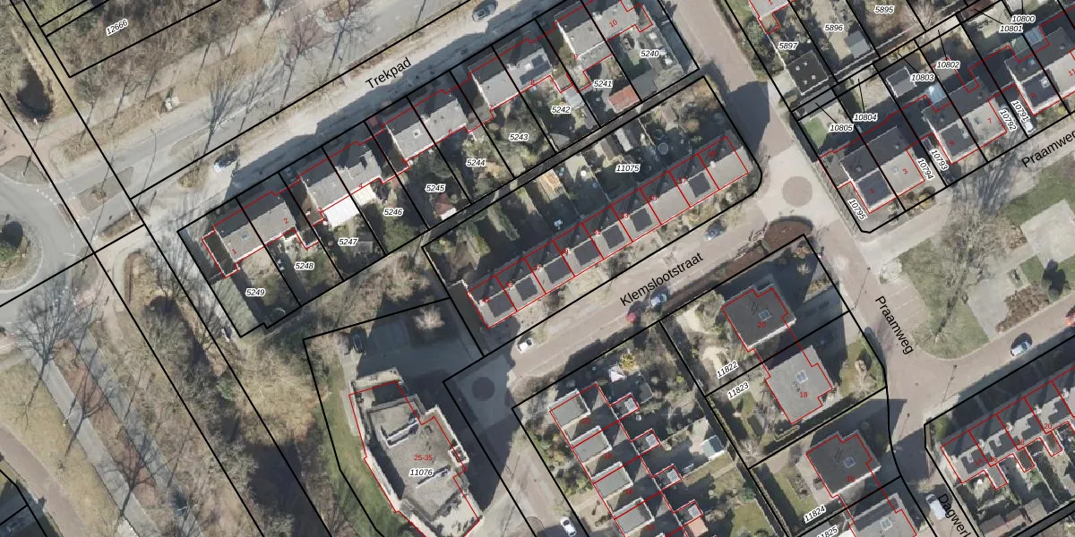 Het perceel waarop Klemslootstraat 47 staat heeft een oppervlakte van 1435 m². Dit is een zeer groot perceel. De perceeloppervlakte wordt geregistreerd door het Kadaster. Gedetailleerde informatie over de maten van dit perceel kunt u vinden in het rapport Kadastrale kaart met maatvoering van Klemslootstraat 47.