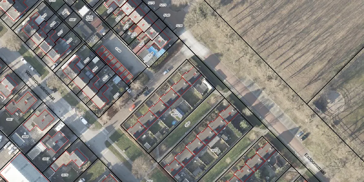 Lariksweg 9 is gelegen op kadastraal perceel WDV03E3689. Deze kadastrale aanduiding is uniek en wordt gebruikt door het Kadaster om eigendomsrechten en andere zakelijke rechten vast te leggen. Het perceel maakt onderdeel uit van de kadastrale gemeente Wildervank.