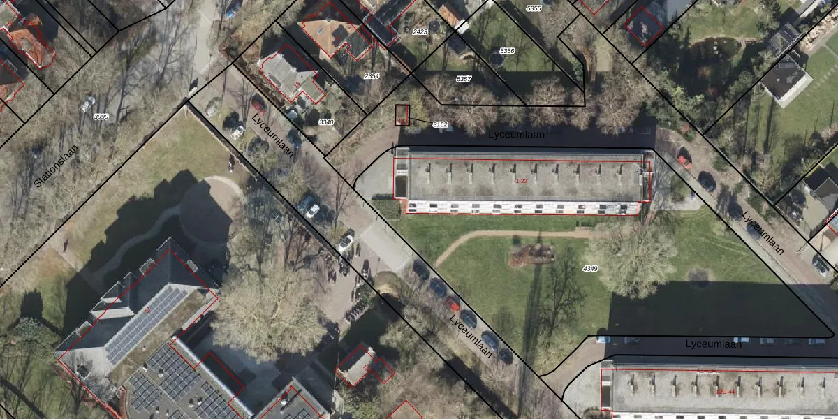 Het perceel waarop Lyceumlaan 1 staat heeft een oppervlakte van 3665 m². Dit is een zeer groot perceel. De perceeloppervlakte wordt geregistreerd door het Kadaster. Gedetailleerde informatie over de maten van dit perceel kunt u vinden in het rapport Kadastrale kaart met maatvoering van Lyceumlaan 1.