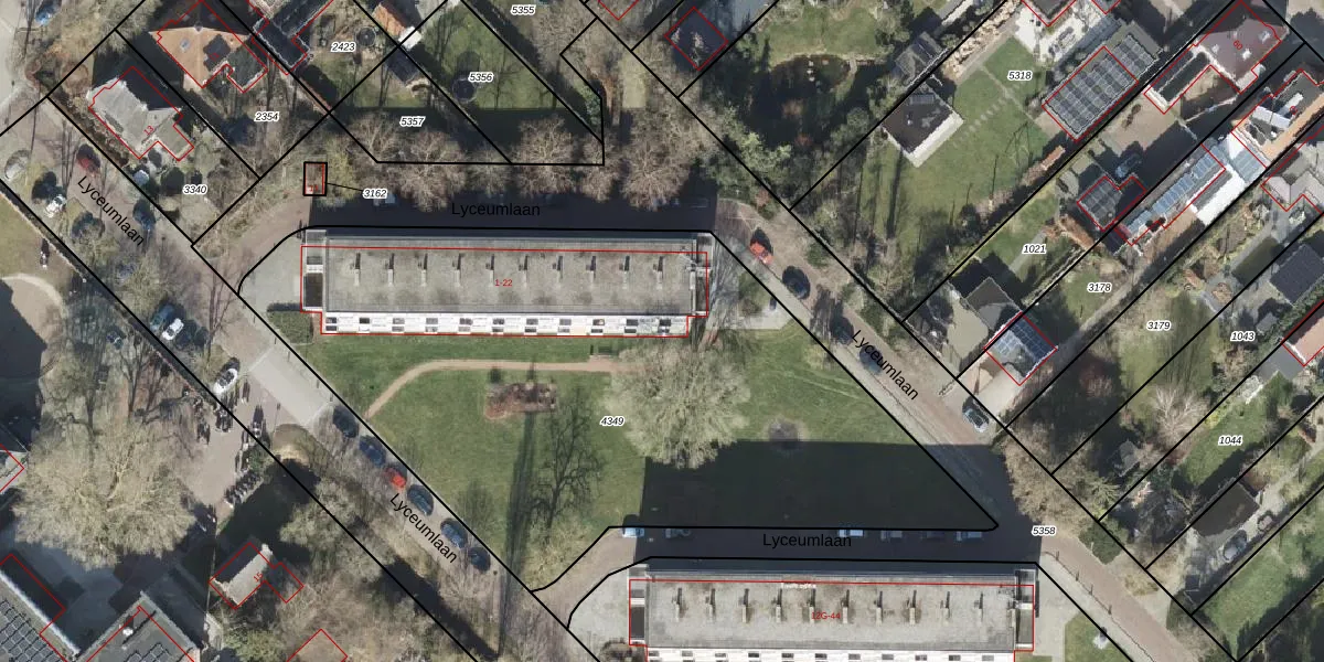 Het perceel waarop Lyceumlaan 11 staat heeft een oppervlakte van 3665 m². Dit is een zeer groot perceel. De perceeloppervlakte wordt geregistreerd door het Kadaster. Gedetailleerde informatie over de maten van dit perceel kunt u vinden in het rapport Kadastrale kaart met maatvoering van Lyceumlaan 11.