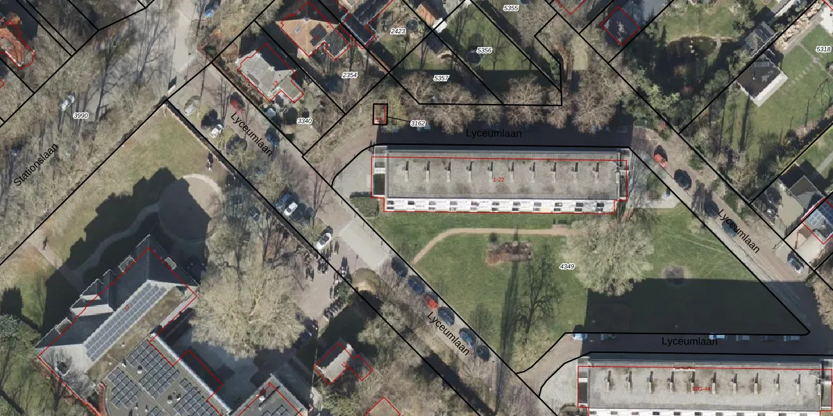Het perceel waarop Lyceumlaan 2 staat heeft een oppervlakte van 3665 m². Dit is een zeer groot perceel. De perceeloppervlakte wordt geregistreerd door het Kadaster. Gedetailleerde informatie over de maten van dit perceel kunt u vinden in het rapport Kadastrale kaart met maatvoering van Lyceumlaan 2.
