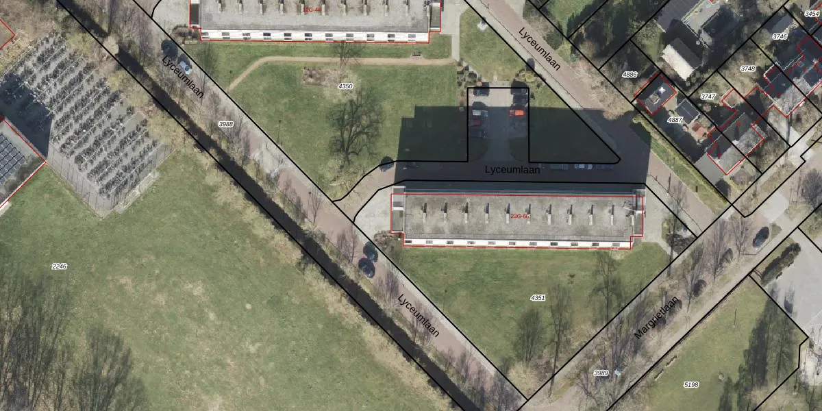 Lyceumlaan 23-G is gelegen op kadastraal perceel OWD00N4351. Deze kadastrale aanduiding is uniek en wordt gebruikt door het Kadaster om eigendomsrechten en andere zakelijke rechten vast te leggen. Het perceel maakt onderdeel uit van de kadastrale gemeente Onstwedde.