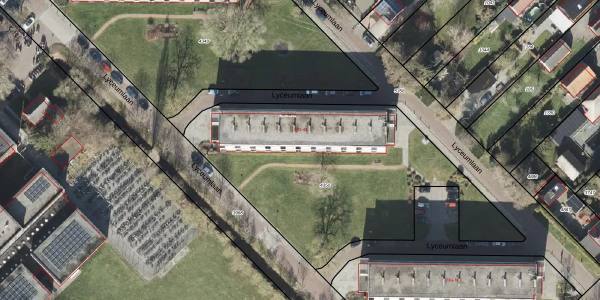 Het perceel waarop Lyceumlaan 28 staat heeft een oppervlakte van 3395 m². Dit is een zeer groot perceel. De perceeloppervlakte wordt geregistreerd door het Kadaster. Gedetailleerde informatie over de maten van dit perceel kunt u vinden in het rapport Kadastrale kaart met maatvoering van Lyceumlaan 28.