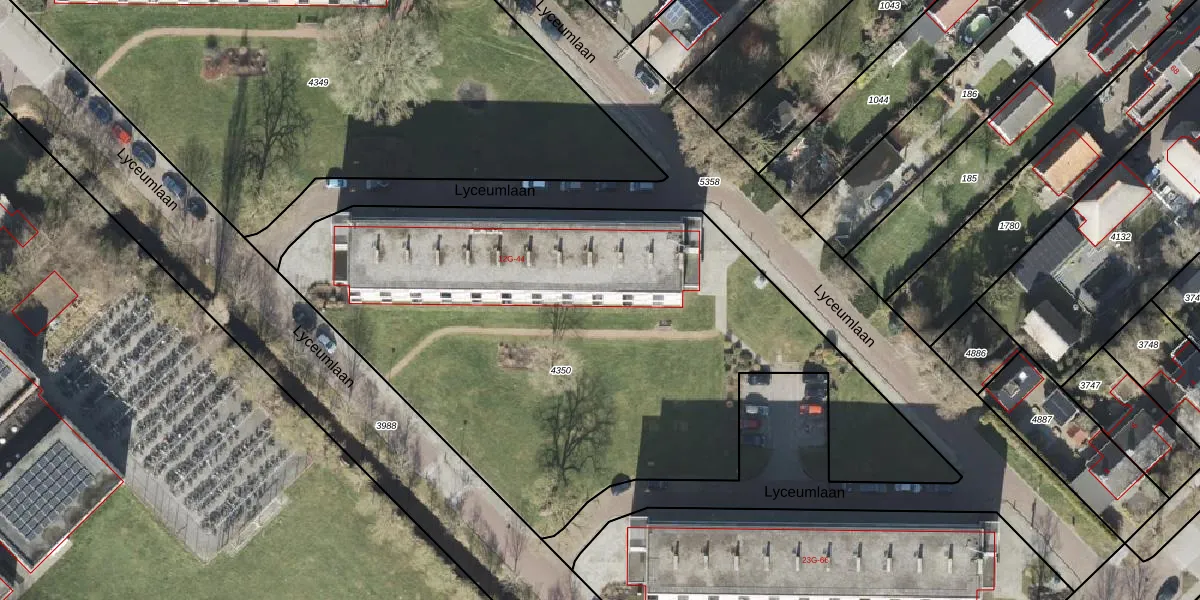 Het perceel waarop Lyceumlaan 31 staat heeft een oppervlakte van 3395 m². Dit is een zeer groot perceel. De perceeloppervlakte wordt geregistreerd door het Kadaster. Gedetailleerde informatie over de maten van dit perceel kunt u vinden in het rapport Kadastrale kaart met maatvoering van Lyceumlaan 31.