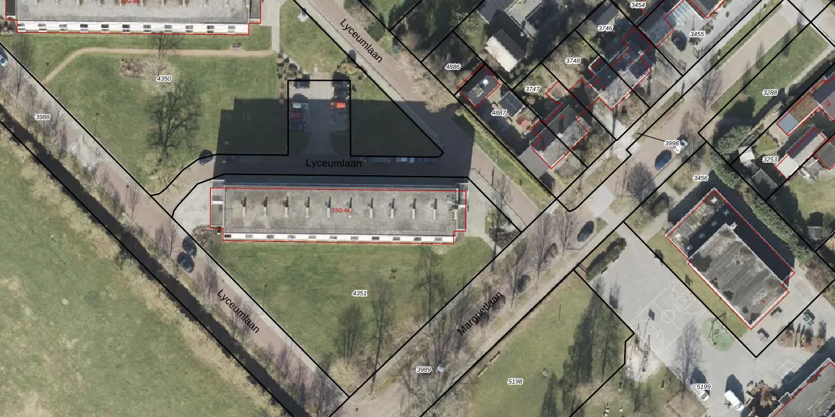 Lyceumlaan 32-G is gelegen op kadastraal perceel OWD00N4351. Deze kadastrale aanduiding is uniek en wordt gebruikt door het Kadaster om eigendomsrechten en andere zakelijke rechten vast te leggen. Het perceel maakt onderdeel uit van de kadastrale gemeente Onstwedde.