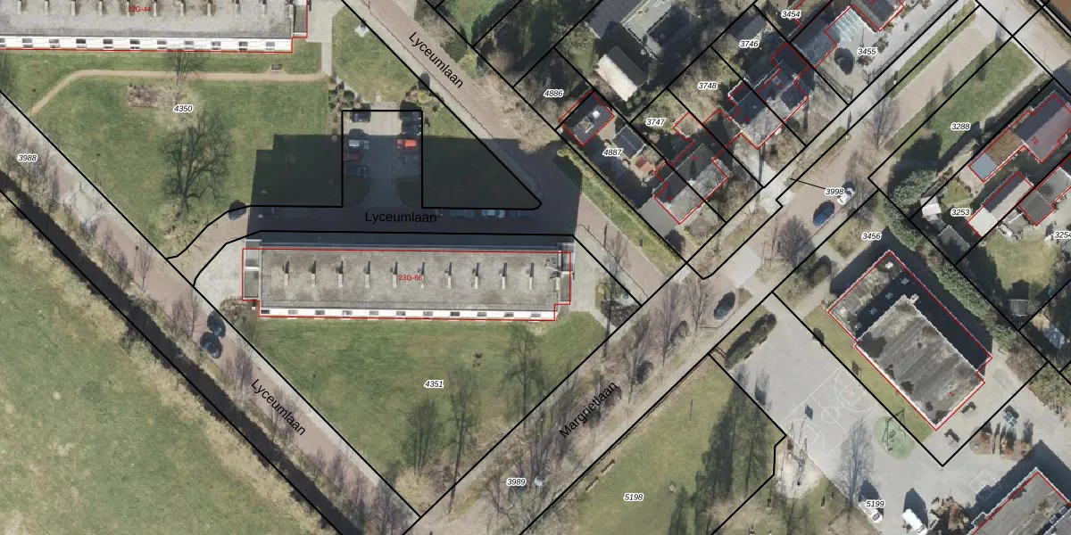 Lyceumlaan 33-G is gelegen op kadastraal perceel OWD00N4351. Deze kadastrale aanduiding is uniek en wordt gebruikt door het Kadaster om eigendomsrechten en andere zakelijke rechten vast te leggen. Het perceel maakt onderdeel uit van de kadastrale gemeente Onstwedde.