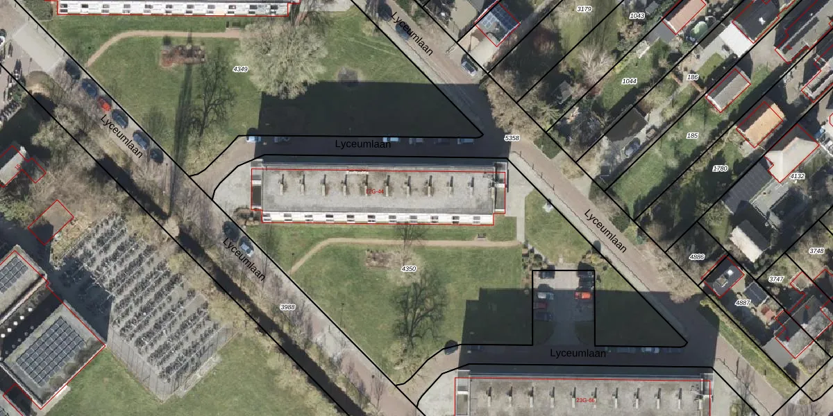 Het perceel waarop Lyceumlaan 41 staat heeft een oppervlakte van 3395 m². Dit is een zeer groot perceel. De perceeloppervlakte wordt geregistreerd door het Kadaster. Gedetailleerde informatie over de maten van dit perceel kunt u vinden in het rapport Kadastrale kaart met maatvoering van Lyceumlaan 41.