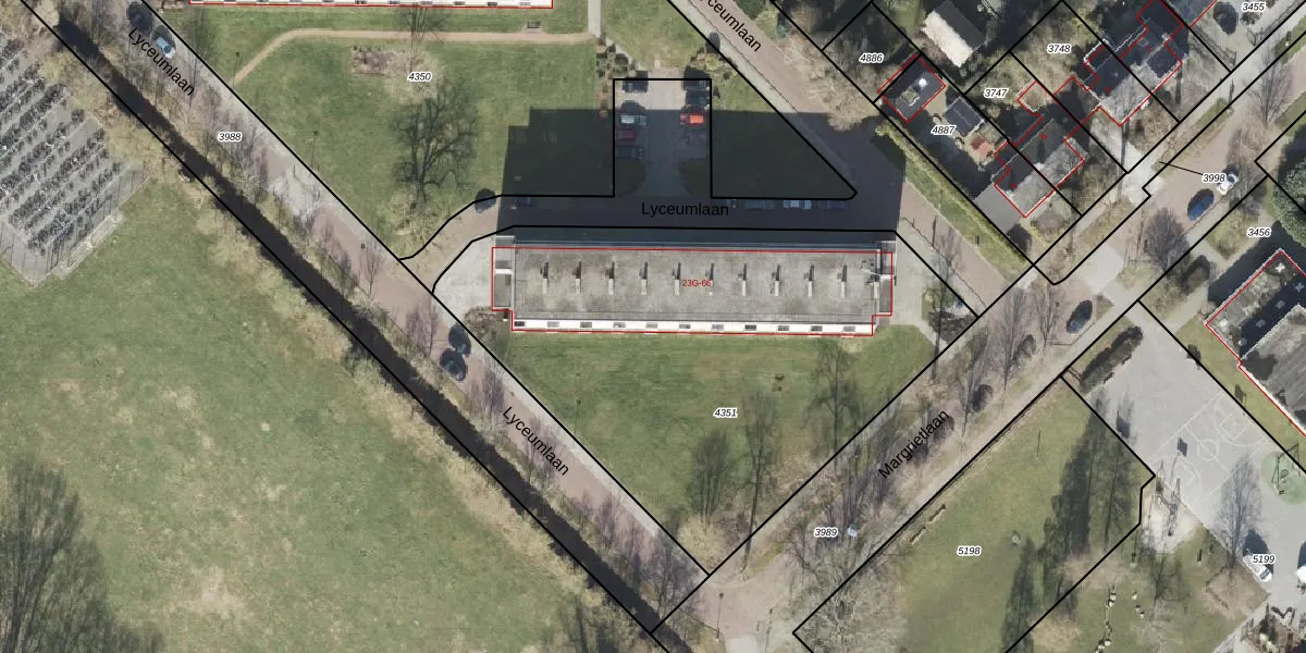 Het perceel waarop Lyceumlaan 49 staat heeft een oppervlakte van 2580 m². Dit is een zeer groot perceel. De perceeloppervlakte wordt geregistreerd door het Kadaster. Gedetailleerde informatie over de maten van dit perceel kunt u vinden in het rapport Kadastrale kaart met maatvoering van Lyceumlaan 49.