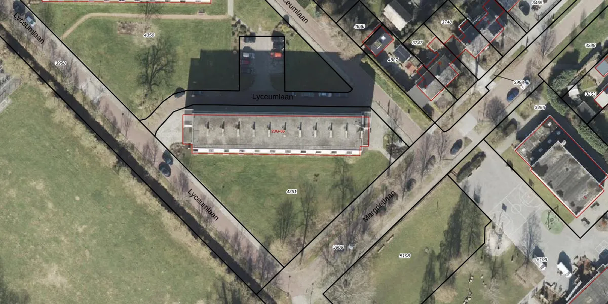 Het perceel waarop Lyceumlaan 52 staat heeft een oppervlakte van 2580 m². Dit is een zeer groot perceel. De perceeloppervlakte wordt geregistreerd door het Kadaster. Gedetailleerde informatie over de maten van dit perceel kunt u vinden in het rapport Kadastrale kaart met maatvoering van Lyceumlaan 52.