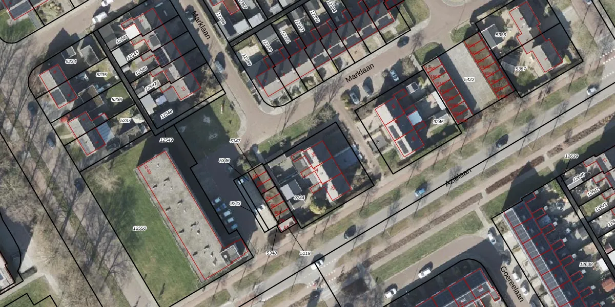 Het perceel waarop Marklaan 52 staat heeft een oppervlakte van 665 m². Dit is een groot perceel. De perceeloppervlakte wordt geregistreerd door het Kadaster. Gedetailleerde informatie over de maten van dit perceel kunt u vinden in het rapport Kadastrale kaart met maatvoering van Marklaan 52.