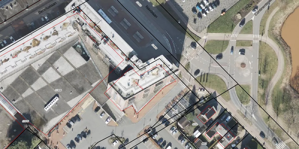 Het perceel waarop Navolaan 15-19 staat heeft een oppervlakte van 9465 m². Dit is een zeer groot perceel. De perceeloppervlakte wordt geregistreerd door het Kadaster. Gedetailleerde informatie over de maten van dit perceel kunt u vinden in het rapport Kadastrale kaart met maatvoering van Navolaan 15-19.