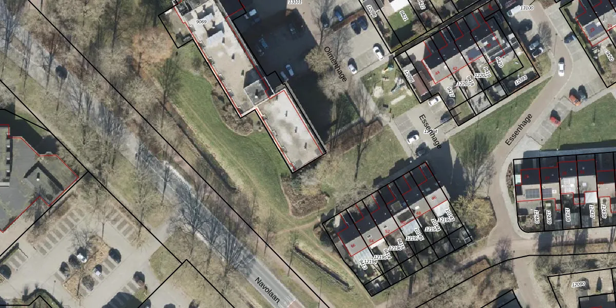 Het perceel waarop Olmenhage 48 staat heeft een oppervlakte van 1710 m². Dit is een zeer groot perceel. De perceeloppervlakte wordt geregistreerd door het Kadaster. Gedetailleerde informatie over de maten van dit perceel kunt u vinden in het rapport Kadastrale kaart met maatvoering van Olmenhage 48.