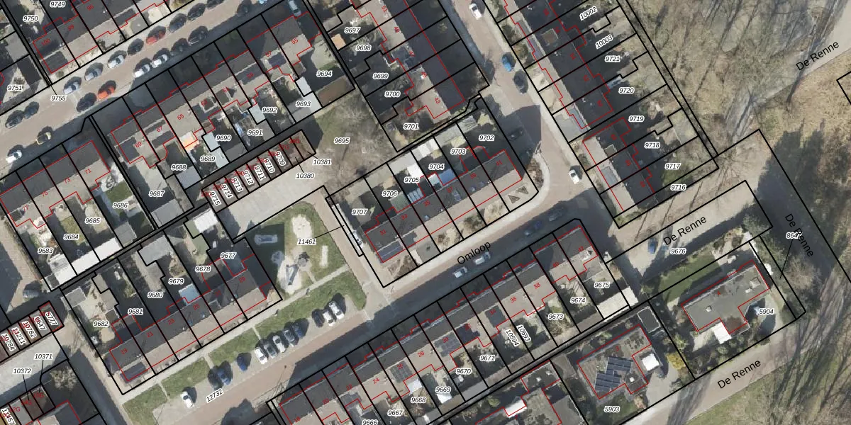 Gebruik de zoekbalk of klik op een perceel voor informatie over de adressen binnen dit perceel.