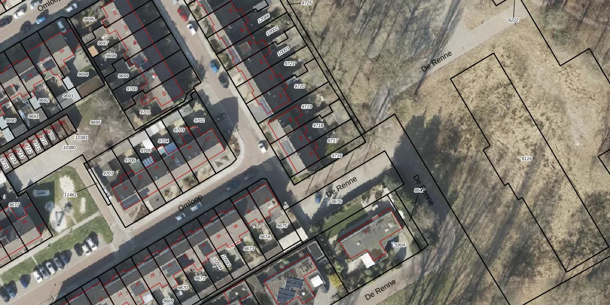 Gebruik de zoekbalk of klik op een perceel voor informatie over de adressen binnen dit perceel.