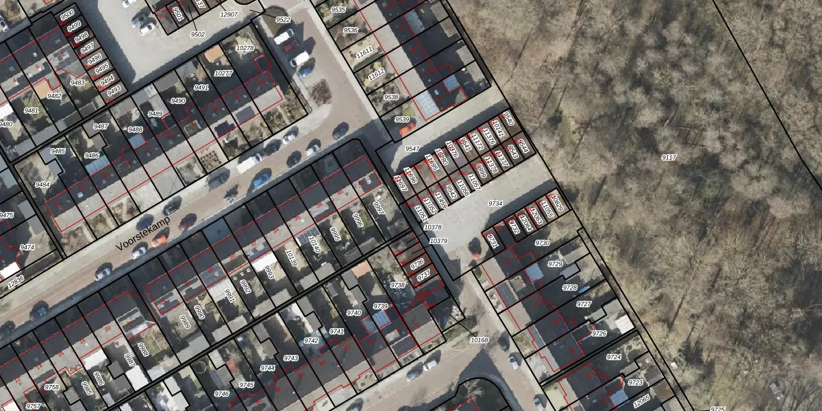 Gebruik de zoekbalk of klik op een perceel voor informatie over de adressen binnen dit perceel.