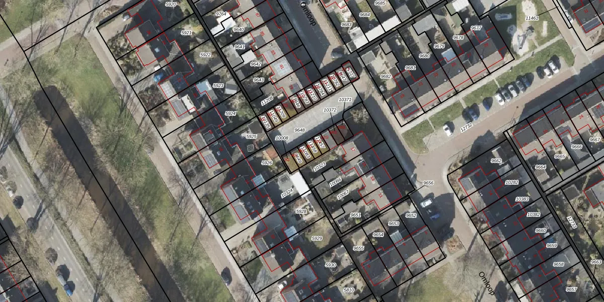 Het perceel waarop Omloop 6-G staat heeft een oppervlakte van 19 m². Dit is een klein perceel. De perceeloppervlakte wordt geregistreerd door het Kadaster. Gedetailleerde informatie over de maten van dit perceel kunt u vinden in het rapport Kadastrale kaart met maatvoering van Omloop 6-G.
