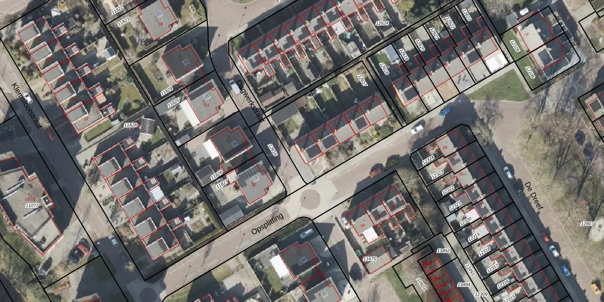 Het perceel waarop Opsplitting 19 staat heeft een oppervlakte van 960 m². Dit is een groot perceel. De perceeloppervlakte wordt geregistreerd door het Kadaster. Gedetailleerde informatie over de maten van dit perceel kunt u vinden in het rapport Kadastrale kaart met maatvoering van Opsplitting 19.