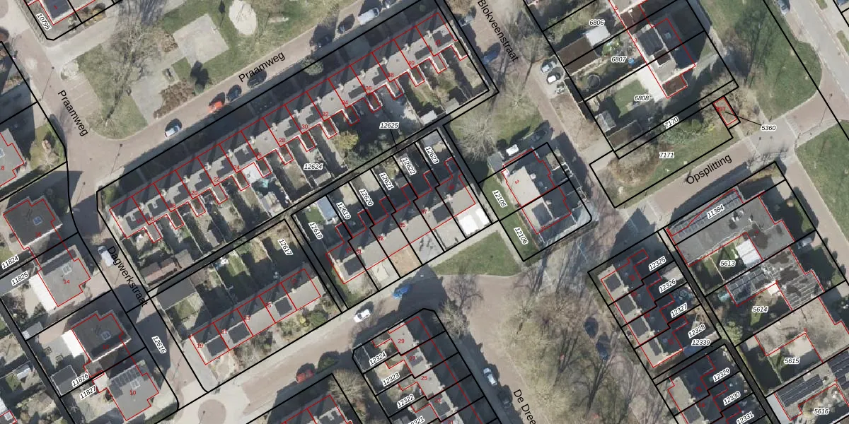 Gebruik de zoekbalk of klik op een perceel voor informatie over de adressen binnen dit perceel.